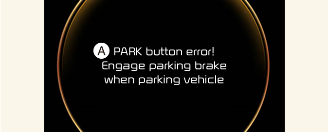 A: PARK button error! (Грешка в бутона паркиране!) Engage parking brake when parking vehicle (Включете паркинг спирачката, когато паркирате автомобила)