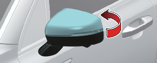 In case it is an electric type outside rear view mirror, don't fold it by hand. It could cause motor failure.