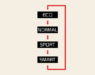 The drive mode will change to NORMAL mode when the engine is restarted. However, except when it is in ECO mode and SMART mode. ECO mode and SMART mode will be maintained, as selected when the engine is restarted.