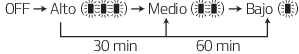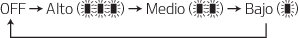 Cada vez que se pulsen las palancas o el interruptor, el ajuste de la temperatura del asiento cambiará como se indica a continuación: