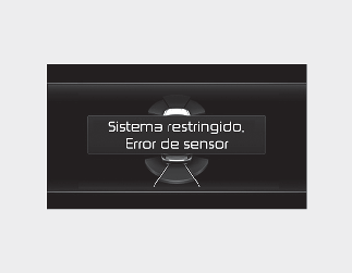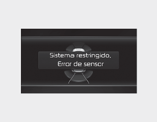 Cuando la asistencia de prevención de colisión al estacionar marcha atrás u otros sistemas relacionados no funcionen correctamente, aparecerá el mensaje de advertencia "Compruebe Asistencia de prevención de colisión al estacionar marcha atrás" en el tablero y la función se desactivará automáticamente. Recomendamos que lleve a revisar su vehículo a un centro de servicio/distribuidor Kia autorizado.