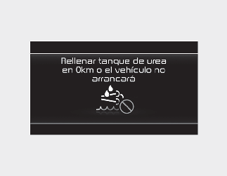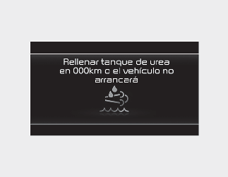 de urea se acerca al nivel de demasiado bajo, aparece el mensaje de advertencia "Rellenar el tanque de urea en 000km o el