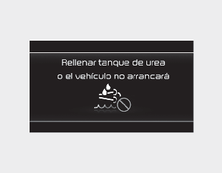 Cuando se muestre el mensaje "Rellenar tanque de urea o el vehículo no arrancará" con el testigo de advertencia de SCR (