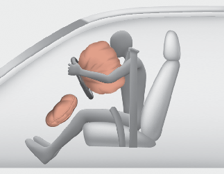 A fully inflated air bag, in combination with a properly worn seat belt, slows the driver's or the passenger's forward motion, reducing the risk of head and chest injury.