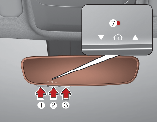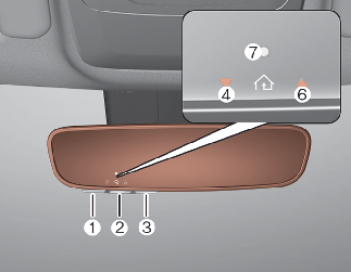 If the indicator (4) or (6) does not turn to green, it indicates that the last status of garage door was not received properly. The HomeLink mirror tries to receive the last known status of the garage door for a few seconds.
