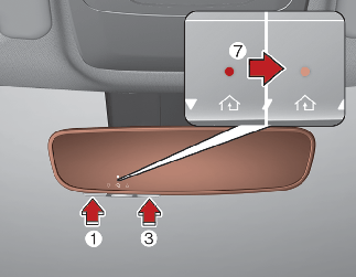 Pull the day/night lever (1) toward you to reduce the glare from the headlamps of the vehicles behind you during night driving.