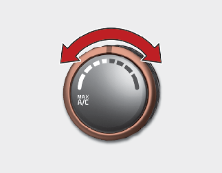 To operate the MAX A/C, turn the temperature knob all the way to the left. Air flow is directed toward the upper body and face.
