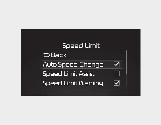 With the engine on, select or deselect 'Driver Assistance → Speed Limit' from the Settings menu to set whether or not to use each function.