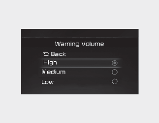 If you change the Warning Volume, the Warning Volume of other Driver Assistance systems may change.