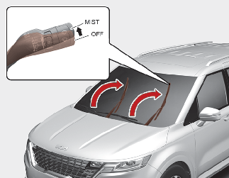 After turning off the engine, move the wiper switch to the single wiping (MIST) position within 20 seconds and hold the switch more than 2 seconds until the wiper blade is in the fully up position.
