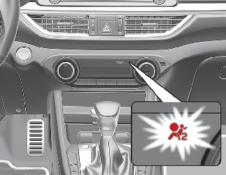 Si le système de détection des occupants ne fonctionne pas correctement, le voyant d'avertissement de coussin gonflable du SRS du tableau de bord s'allume parce que le coussin gonflable frontal du passager est relié au système de détection des occupants. En cas de dysfonctionnement du système de détection des occupants, le voyant PASSENGER AIR BAG « OFF » ne s’allume pas et le coussin gonflable frontal du passager se gonfle en cas de collision frontale, même s'il n'y a aucun occupant sur le siège avant du passager.