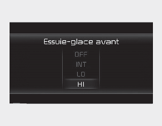 Vous pouvez activer ou désactiver la fonction d’affichage des essuie-glaces/éclairages à partir du mode Réglages utilisateur de l’écran LCD du bloc d’instruments.