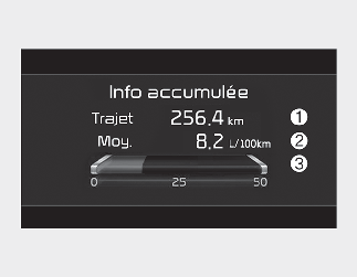 Les informations cumulées sont calculées après que le véhicule a parcouru plus de 300 mètres (0,2 miles).