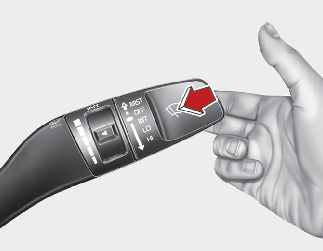 Tirer doucement le levier vers vous pour pulvériser du liquide lave-glace sur le pare-brise et pour faire fonctionner les essuie-glaces de 1 à 3 cycles. Utilisez cette fonction lorsque le pare-brise est sale. La pulvérisation et le balayage continueront jusqu'à ce que vous relâchiez le levier.