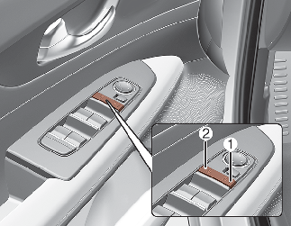 Si la clé est dans le contacteur d’allumage (ou si la clé intelligente est dans le véhicule) et qu’une porte avant est ouverte, les portes ne se verrouilleront pas lorsque la position « Lock » (1) de l’interrupteur de verrouillage central des portes est enfoncée.