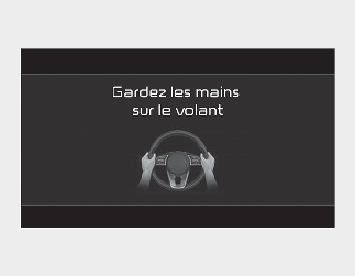 Si le conducteur ne tient pas le volant pendant plusieurs secondes, le message d’avertissement « Gardez les mains sur le volant » s’affiche sur le tableau de bord et un signal sonore est émis à plusieurs reprises.