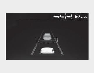 Quand le régulateur de vitesse intelligent est temporairement annulé, la distance avec le véhicule précédent ne sera pas maintenue. Soyez toujours attentif à la route et pendant la conduite et, si nécessaire, appuyez sur la pédale de frein pour ralentir afin de maintenir une distance de sécurité.