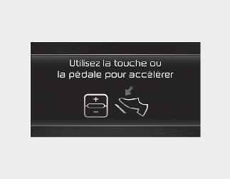 ou la pédale pour accélérer » apparaît sur le tableau de bord. Appuyez sur la pédale d’accélérateur ou poussez le commutateur