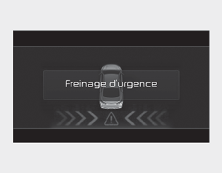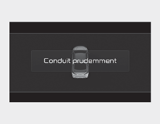 Lorsque le véhicule est mis à l’arrêt à la suite d’un freinage d’urgence, le message d’avertissement « Conduit prudemment » s’affiche sur le tableau de bord.