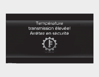 Si vous ignorez cet avertissement, les conditions de conduite peuvent empirer. Vous pouvez ressentir des changements de rapports brusques et fréquents ou des soubresauts. Pour revenir aux conditions de conduite normale, arrêtez le véhicule et appuyez sur le frein au pied ou passez en position P (stationnement).
