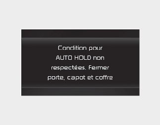 Lorsque vous appuyez sur le commutateur de maintien automatique, si la portière du conducteur et le capot du moteur ne sont pas fermés, un avertissement sonore retentira et un message s'affichera sur l'écran LCD.