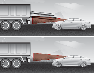 L'assistance à l'évitement de collision frontale pourrait ne pas fonctionner correctement dans une zone (par exemple : un terrain dégagé), où aucune substance n'est détectée une fois le moteur démarré.