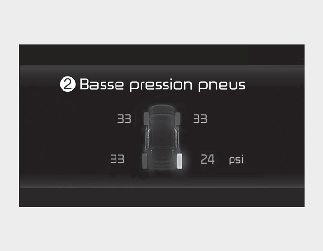 Témoin de position de basse pression des pneus (affiché sur l’écran LCD)