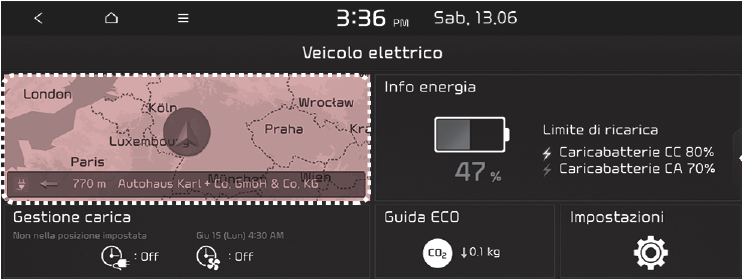Selezionare "EV → Map" (mappa veicolo elettrico) sullo schermo.