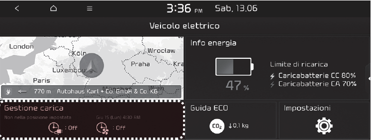 Selezionare "EV → Charge management" (Gestione carica veicolo elettrico) sullo schermo.