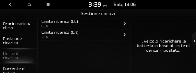 Il livello di carica della batteria finale può essere selezionato quando si esegue la carica con un caricatore CA o CC.