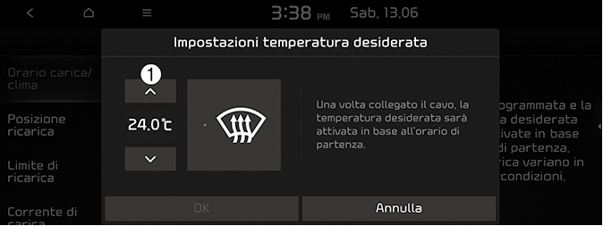 Selezionare "EV → Gestione ricarica → Prenotazione carica e climatizzatore → Climatizzatore programmato → Impostazioni della temperatura desiderata" sullo schermo.