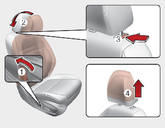 For maximum effectiveness in case of an accident, the headrest should be adjusted so the middle of the headrest is at the same height of the centre of gravity of an occupant's head. Generally, the centre of gravity of most people's head is similar with the height of the top of their eyes. Also, adjust the headrest as close to your head as possible. For this reason, the use of a cushion that holds the body away from the seatback is not recommended.