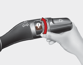 The fog lights will turn on when the fog light switch (1) is turned to the on position after the headlight is turned on.