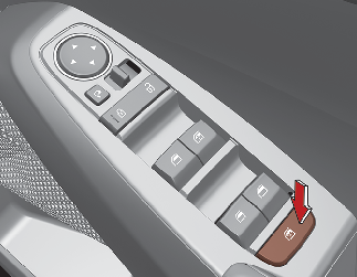 The driver can disable the power window switches on the rear passengers' doors by pressing the power window lock button to the lock position (pressed).