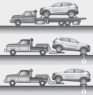 If emergency towing is necessary, we recommend having it done by an authorised Kia dealer or a commercial tow-truck service. Proper lifting and towing procedures are necessary to prevent damage to the vehicle. The use of wheel dollies (1) or flatbed is recommended.