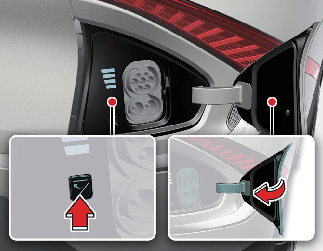 يفتح باب الشحن الكهربائي ويغلق كما يلي.