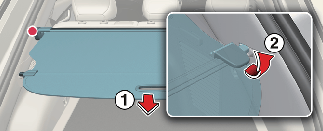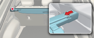 اسحب ساتر أمان البضائع باتجاه مؤخرة السيارة باستخدام المقبض (1).