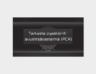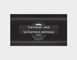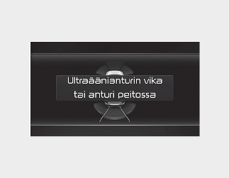 Kojelautaan tulee varoitusviesti "Camera error or blockage" (Kameran virhe tai tukos) tai "Ultrasonic sensor error or blockage " (Ultraäänianturin virhe tai tukos) seuraavissa tilanteissa: