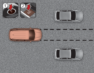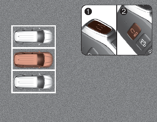 ) -painiketta. Älykäs etäpysäköintiavustaja ohjaa automaattisesti ohjauspyörää, ajoneuvon nopeutta ja vaihteistoa. Ajoneuvo