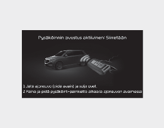 Istu ajoneuvoon älyavain hallussasi. Etäsiirtäminen eteenpäin/taaksepäin -toiminto kytkeytyy pois. Tällöin moottori pysyy käynnissä.