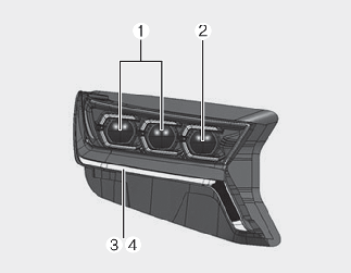 Jos ajovalojen LED (1,2), päiväajovalojen LED (3) ja suuntavilkun LED (4) ei toimi, tarkistuta autosi ammattikorjaamossa. Kia suosittelee käyntiä valtuutetun Kia-jälleenmyyjän/huoltokumppanin luona.