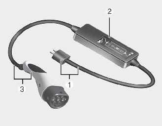 La corriente de carga cambia cada vez que se pulsa el botón (1) durante menos de 1 segundo con el cargador enchufado a una toma de corriente pero no al vehículo. ![]() |