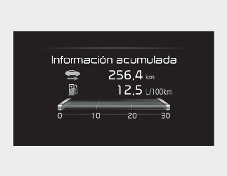 El modo del ordenador de viaje muestra información relacionada con los parámetros de conducción del vehículo incluyendo información acumulada, información de conducción, etc.