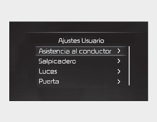 Para cambiar la configuración de la asistencia al conductor, pulse el botón OK (aceptar) en el volante durante más de 1 segundo cuando se muestre el modo Asistencia al conductor.