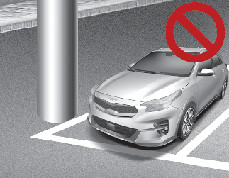 Al salir de un espacio para aparcar para estacionar que sea estrecha y esté cerca de una pared, la función no se accionará correctamente. Al salir de un espacio similar al de la figura anterior, el conductor debe tener en cuenta los obstáculos al abandonarlo.