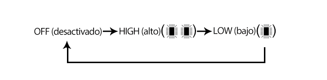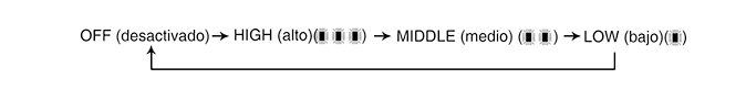 • Cada vez que se pulse el interruptor, el ajuste de la temperatura del asiento cambiará como sigue: