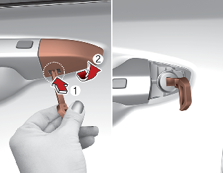 • Las puertas pueden bloquearse y desbloquearse pulsando el botón de la manilla exterior con la llave inteligente en su posesión.