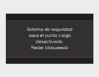 Si el parachoques trasero alrededor del sensor o el radar de esquina trasero están cubiertos por sustancias extrañas, como nieve o lluvia, o se ha instalado un remolque o un mecanismo de arrastre, es posible que se reduzca el rendimiento de detección y se limite temporalmente o se deshabilite la advertencia de salida segura. Si esto ocurre, aparece el mensaje de advertencia "Blind-Spot Safety system disabled. Radar blocked" (Sistema de seguridad de punto ciego deshabilitado. Radar bloqueado) en el tablero. La función se accionará con normalidad cuando se retiren las sustancias extrañas, el remolque, etc., y, a continuación, se vuelva a arrancar el motor.