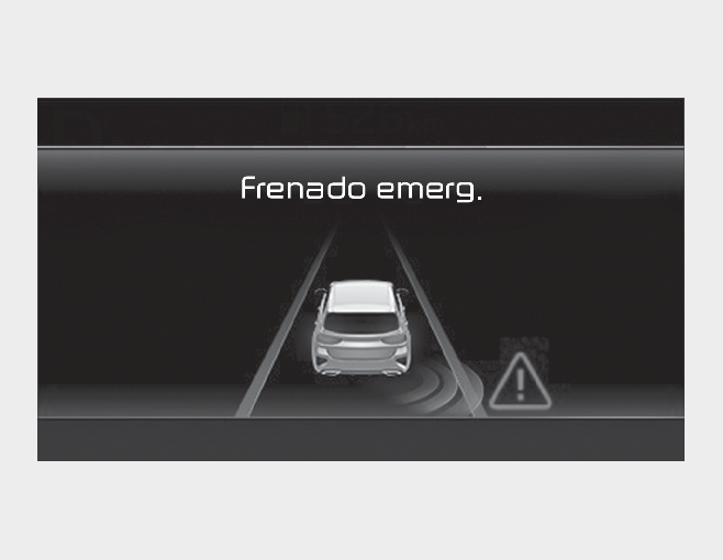 • Cuando el vehículo se detiene debido a una frenada de emergencia, el mensaje de advertencia "Conduzca con precaución" aparece en el tablero.