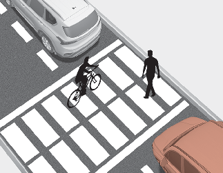 • Cuando hay un peatón o un ciclista entre usted y el vehículo que le precede